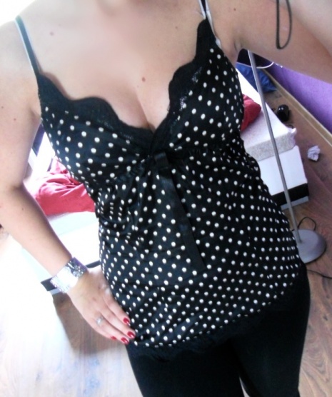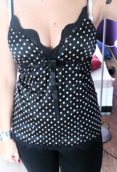 Nabízím černé saténové tílko s puntíky Amisu. Velikost S. Nošené, ale v dobrém stavu, jako nové