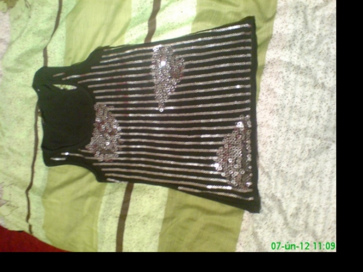 černé tílko s glitrama skvělé na párty . Velikost je S/M .Mám už takových tílek hodně a proto posílám dál .