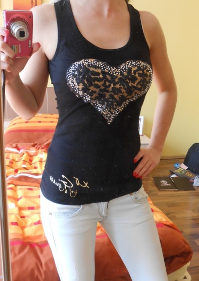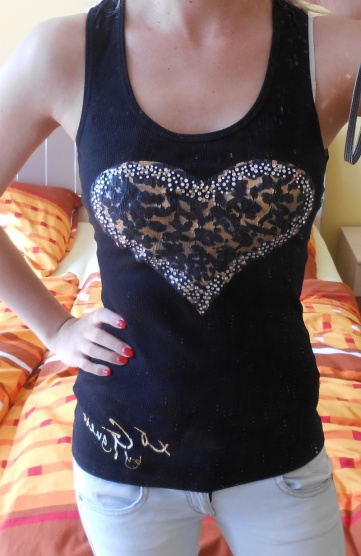 Černé tílko s leopardím srdcem Guess