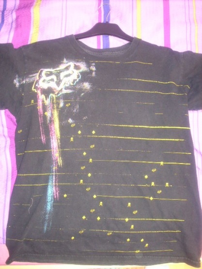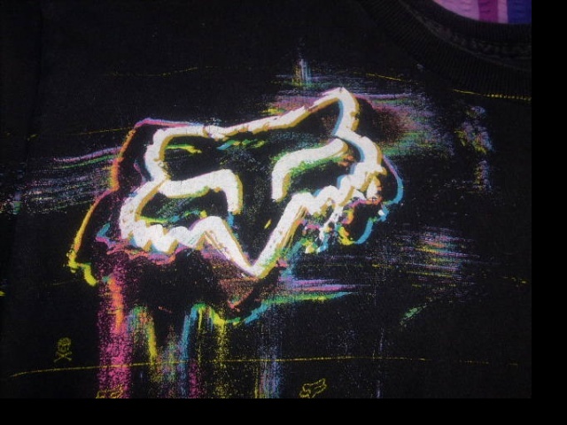 0Černé tričko Fox a barevnými potisky - logo Fox a lebka. Tričko je párkrát nošené. Příjemný materiál.