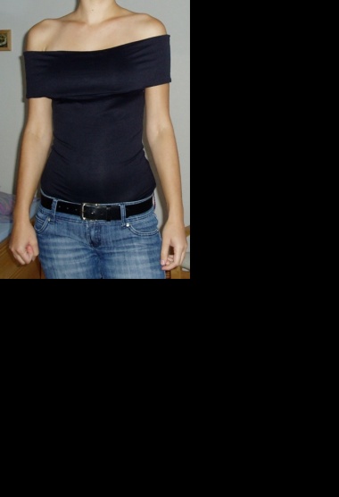 Černé tričko z lesklého umělého vlákna.Vrchní část se dá ohnout přes ramena.Cena: 70 Kč vč. poštovného