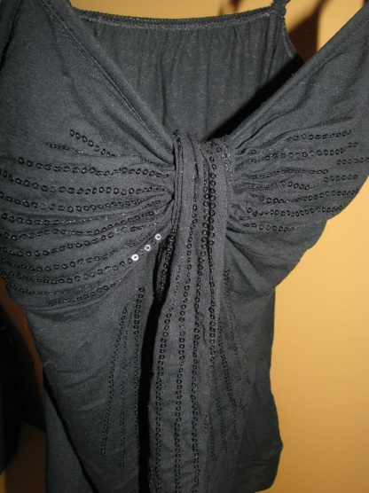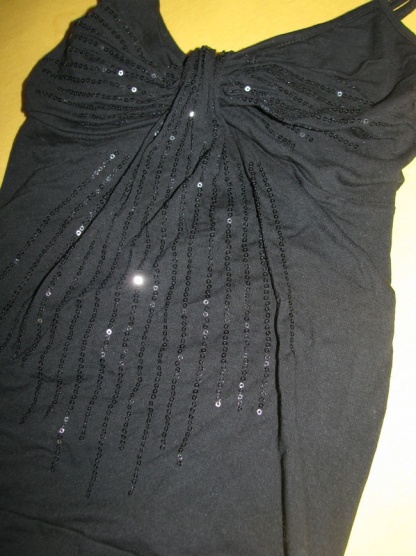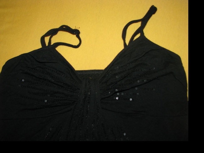Prodám krásné, minimálně nošené černé tričko / tílko kupované ve Francii. Ze předu ho zdobí flitry, zezadu hladce černé. Ramínka se dají posouvat.