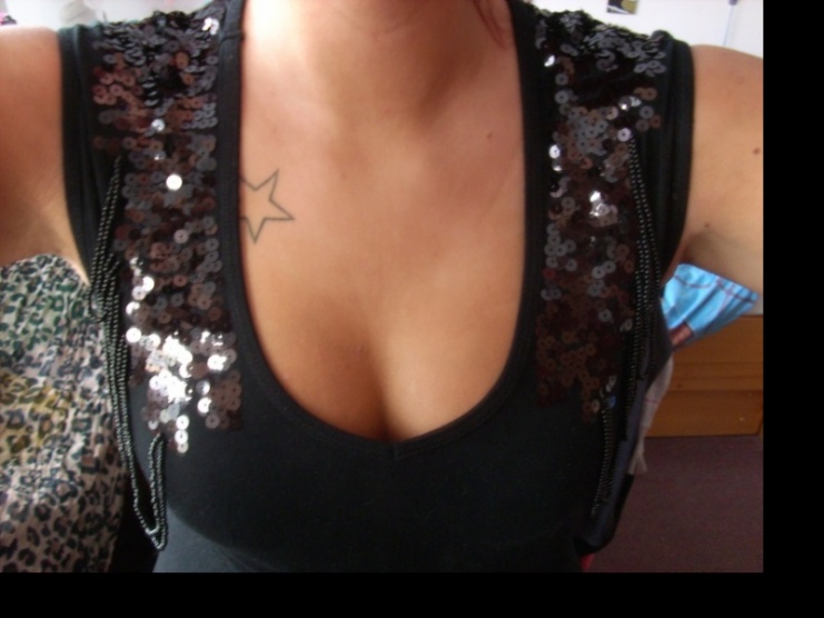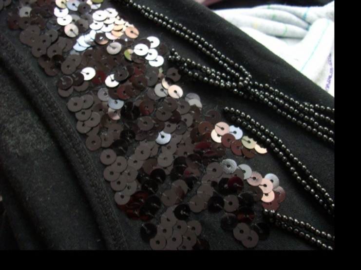 Prodám nenošené černé třičko, z ramen kolem výstřihu flitry. Velmi poddajný a příjemný materiál.