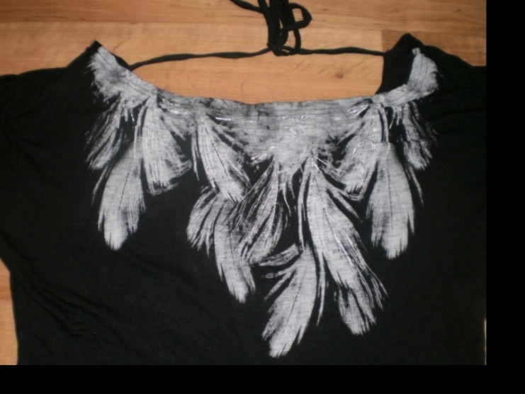 je černé barvy s aplikací peříček,kupované v New Yorkeru