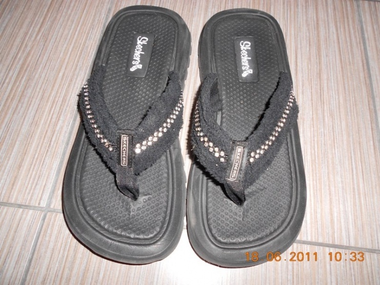 Nádherné žabky Skechers, jsou černé a zdobené nádhernými lesklými kamínky! Velikost je 39/40....Měla jsem je na noze jen 1x, nakoupila jsem si několikery a nestíhám unosit! Moje cena je 550,- vč. pošty