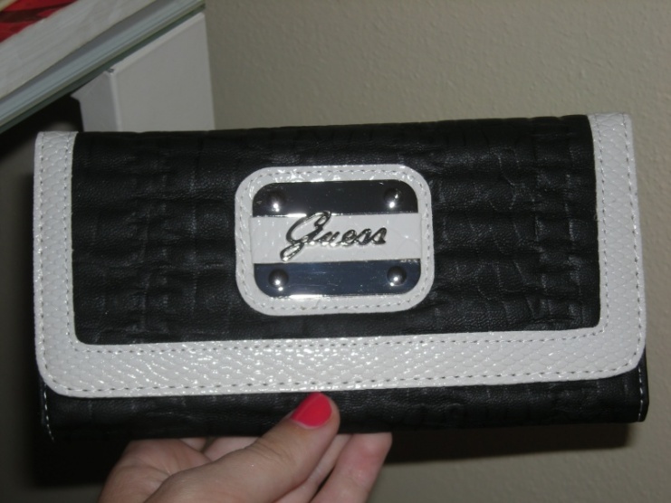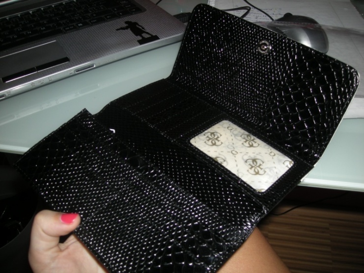 Prodám novou peněženku s nápisem Guess- zřejmě není originál, ale je moc hezká. Dovezená ze zahraničí. Délka 19 cm, výška 9 cm. Nová. V peněžence najdete 11 míst pro karty, 3 kapsičky na papírové peníze, 1 kapsička na mince, 1 místo na fotku.