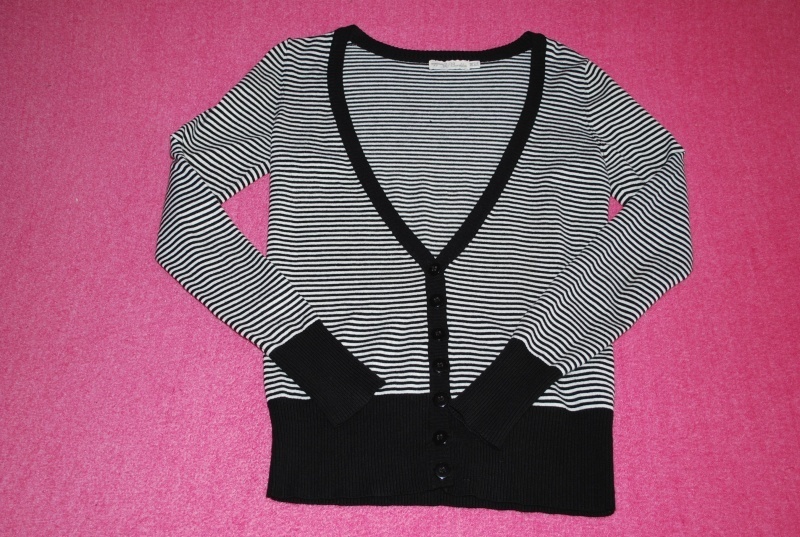 0Černo-bílý pruhovaný svetřík zn. Berhska. Koupený zde na Omlazení, neunosím.