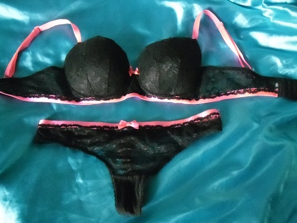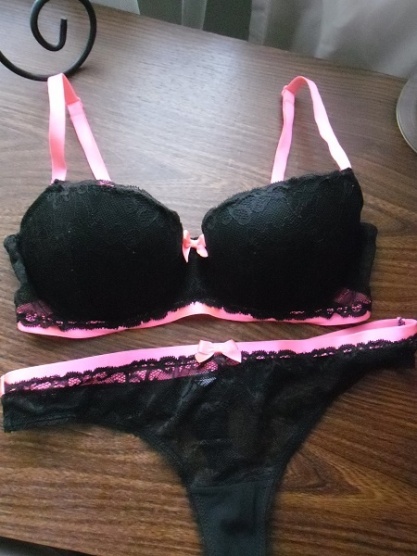 Prodám úplně nový set spodního prádla, pouze ustřižené cedulky, nenošené. Podprsenka je 75C, vycpávky součástí, dají se vyndat popřípadě ještě přidat , typově balconette/bardotka tzn.zvedne prsa zespoda a udělá plný dekolt a kalhotky tanga vel.S. Barva je černá s výrazným neonově růžovým lemováním - nedaří se mi to nafotit ale je to krásný kontrast. Pradlo je opravdu moc krásné
