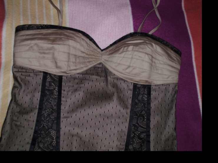 Prodám super elegantní a zároveň sexy korzet značky Promod,je béžový s černým zdobením-krajka,saténové proužky. Lze nosit na ramínka,ale i jako korzet