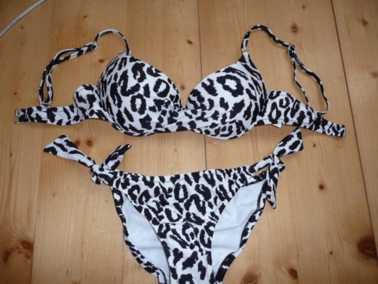 Prodám úplně nové krásné černobílé plavečky z hotmiamistyle.com, velikost S, dnes mi dorazily,ale necítím se v nich,tedy jen vyzkoušené, pochopitelně v původním balení,s nalepovací hygienickou vložkou,prostě fungl nové. Podprsenka push-up-postupně vyztužené košíčky, nedělá nějaký extra velký push-up efekt,jen menší, posuvná ramínka-řekla bych vhodná na vel. 70B-75A,B. Kalhotky bokové na bocích na zavázání.