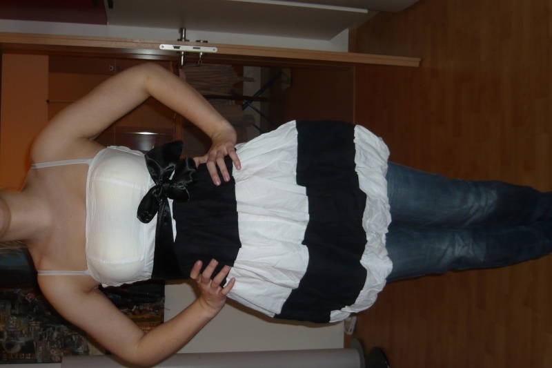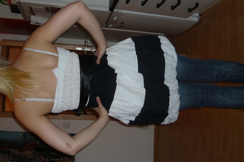 Nové pruhované šatičky. Velikost S-L na zádech je pružná část. Na fotce jen trochu zmuchlané za skříně, jinak drží hezky balonový tvar. V Případě dotazů mne kontaktujte