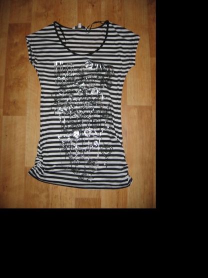 0Prodám jednou vztaé delší pruhované tričko se stříbrným motivem, kupované v CA.