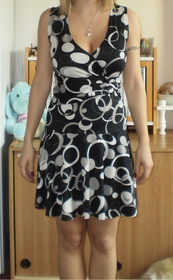 Prodám černobílé šaty s geometrickými vzory neznámé značky. Velikost je psaná M, ale jsou elastické, pružné, takže sednou S i M. Pod výstřihem mají zajímavý detail - uzel. Sukně je rozšířená, ale krásně splývá. Koupila jsem zde, ale nevyužiji cena 150,- + pošta