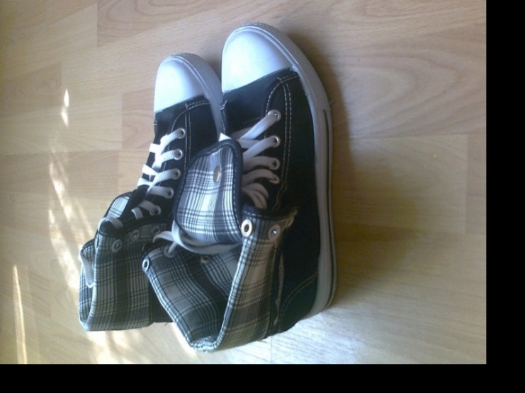 Černobílé tenisky, dvakrát použité, jako nové. Cena: 150,- + 50,- Poštovné.