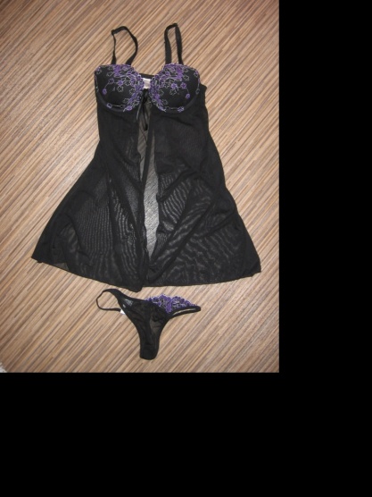 Prodám jednou vzatou černofialovou soupravu s kraječkami.