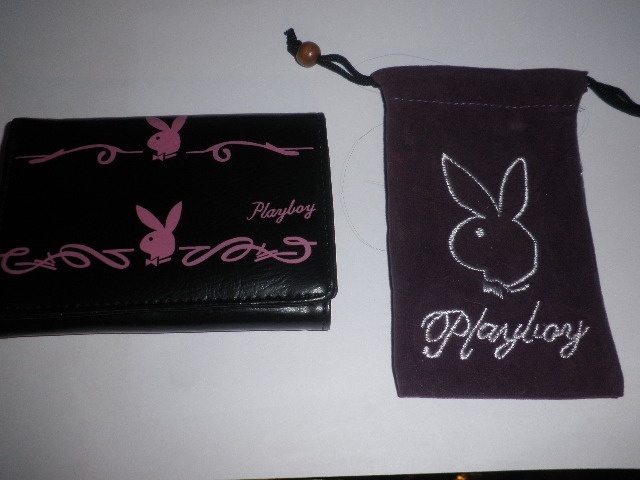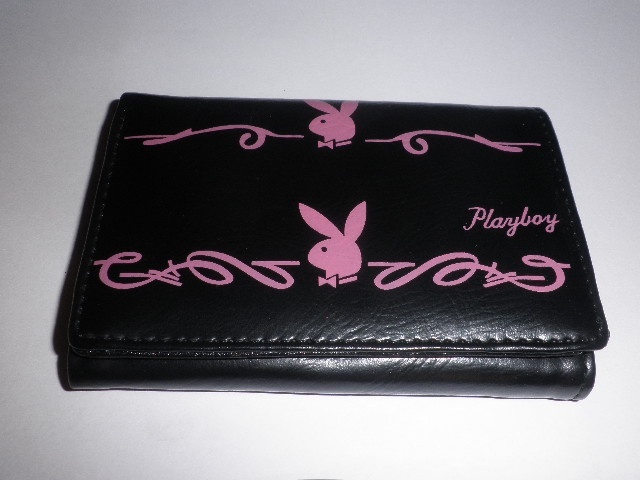 Nová peněženka s motivem Playboy, mám ještě jednu černobílou, tuto neunosím. Nemám přihrádku na mince, občanka se do ní vejde na výšku. Je zde prostor pro platební karty.