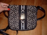 Uvnitř kapsička na zapínání s logem TH, a menší kapsičky na drobnosti.