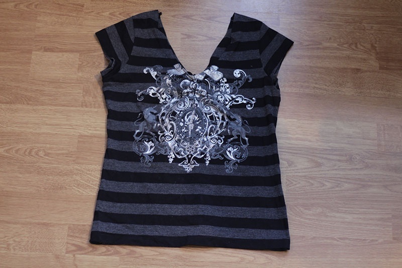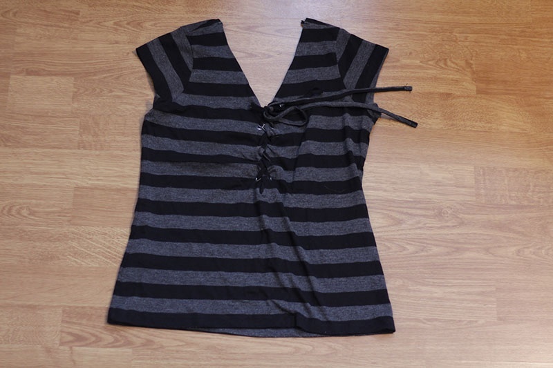 Prodám toto černé proužkované tričko s potiskem značky Clockhouse. Má zavazování na zádech. Velikost S nebo menší M. Minimálně nošené.