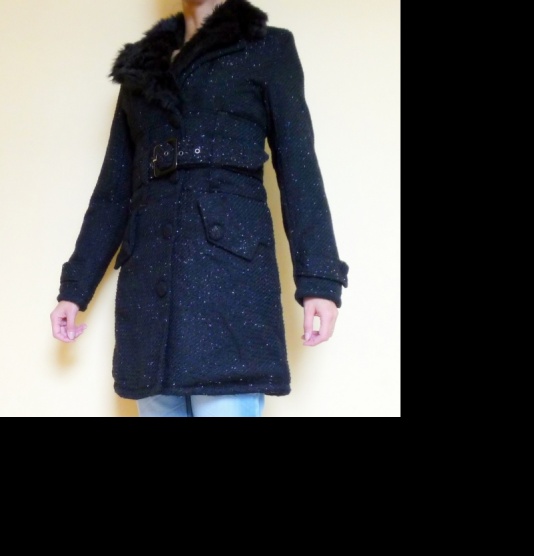 Prodám tento zcela nový kabát - ještě s cedulkami. Má podšívku, u krku kožešinový lem - lze odepnout, v pase pásek. Fotka trochu zkresluje kvůli blesku, je celý černý (mnohem tmavší než na fotce), částečně je protkán lesklou černou nití, která kvůli blesku vytvořila odraz. V případě zájmu pište do SZ.