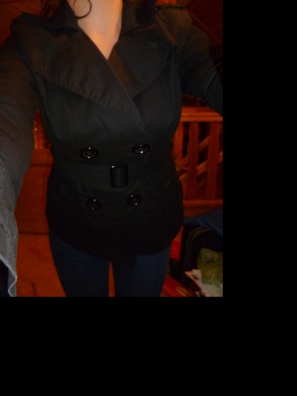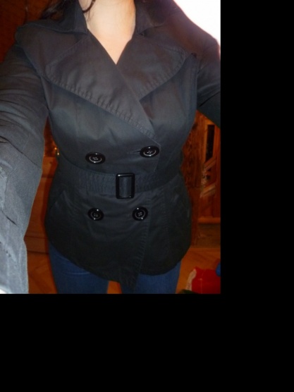0Kabátek je nošený, ale stále hezký. Nošený jeden rok jaro a podzim. Dvouřadové zapínání, v pase pásek.