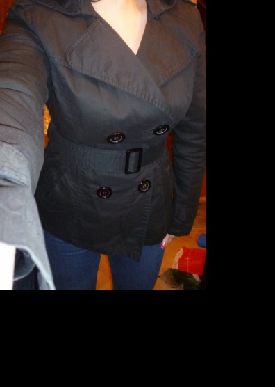 Kabátek je nošený, ale stále hezký. Nošený jeden rok jaro a podzim. Dvouřadové zapínání, v pase pásek.