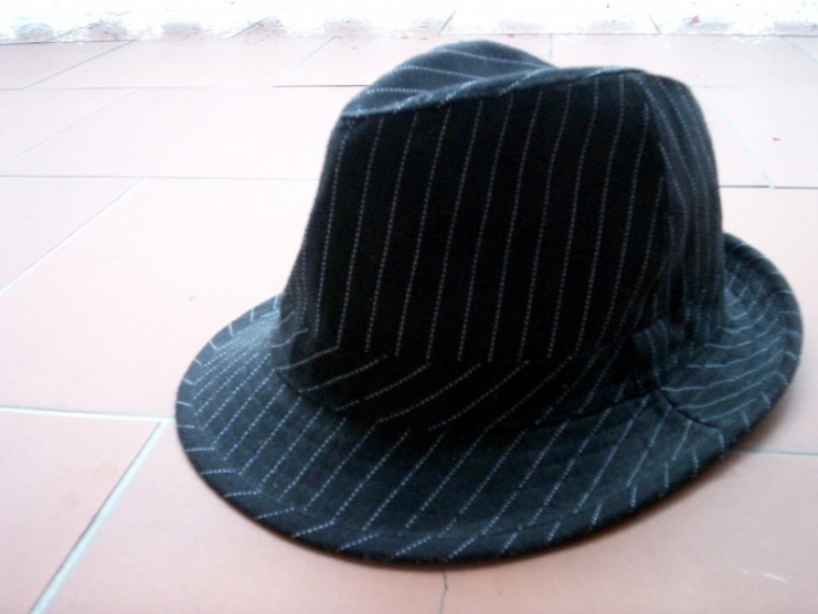 Černý klobouk jemně proužkovaný - NY
