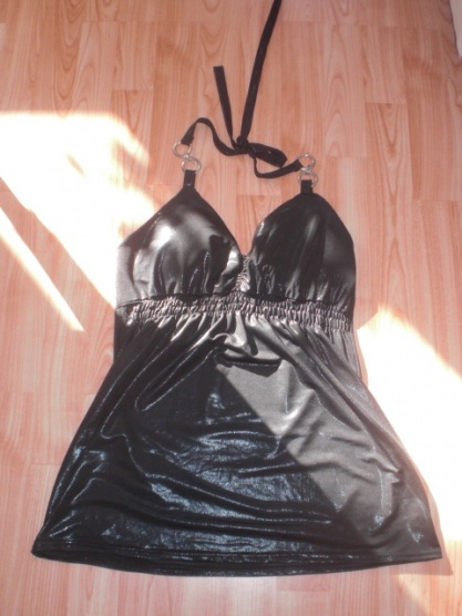 černý lesklý top,vhodný do společnosti se zavazováním za krk s holými zády