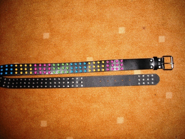 Prodám tento opasek v super stavu - akorát jsem dodělala jednu dírku a u jedné pecičky se trochu sloupává barva. Vypadá moc hezky, byly na něj chvály, akorát se mi k ničemu nehodí...cena: 60 kč, pošta: 40 kč
