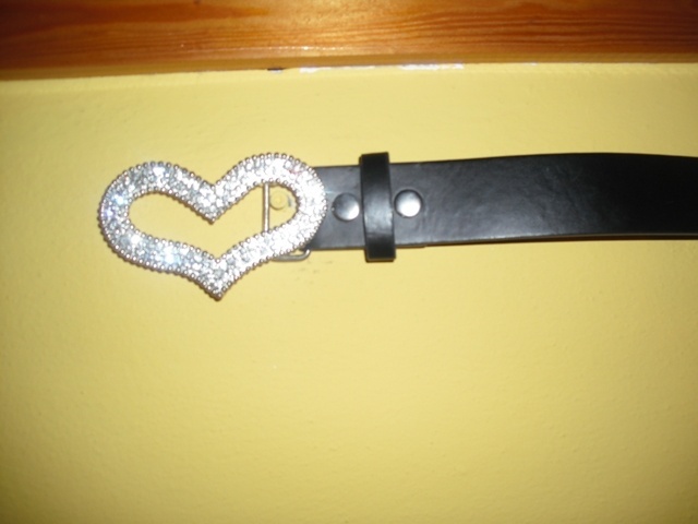 Černý opasek se stříbrným srdíčkem posázeným kamínky
