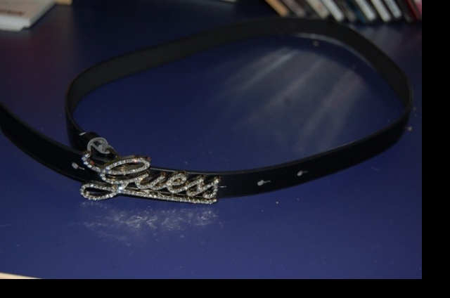Černý pásek značky Guess. Stříbrná spona s kamínky. Používaný, ale ve velmi dobrém stavu.