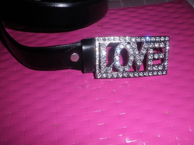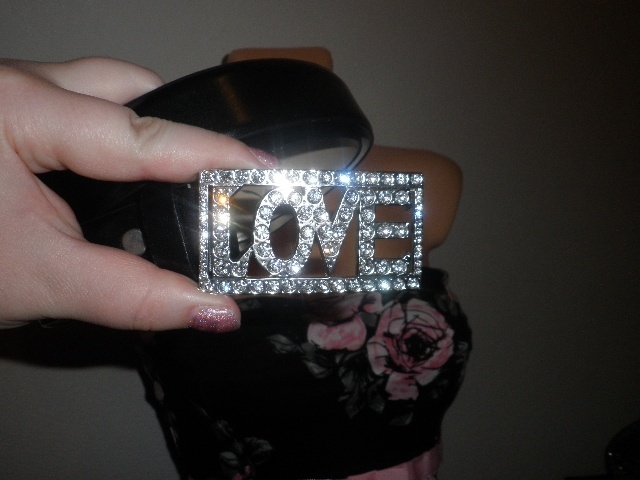 Nový černý pásek z ekokůže s krásnou štrasovou sponou "Love",