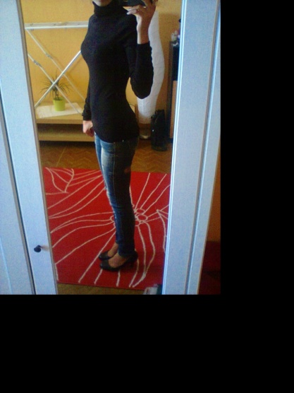 Nepoškozené a nedělají se na něm naprosto žádné žmolky. Na levé spodní straně je kamínky decentně napsaný GM ( neloupou se vůbec a to bylo několikrát práno v pračce). Materiál je velmi příjemný a i když je svetr z tenčí bavlny, tak hřeje. Ustřihla jsem ale cedulku na boku roláku, jelikož obepíná tělo a bavlna je tenčí, tak šel vidět obdelník a vypadalo to nehezky. Cedulka na krku je - Gusess by Marcaino, Los Angeles, 1 -velikost.