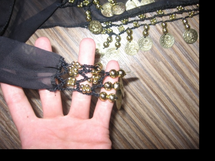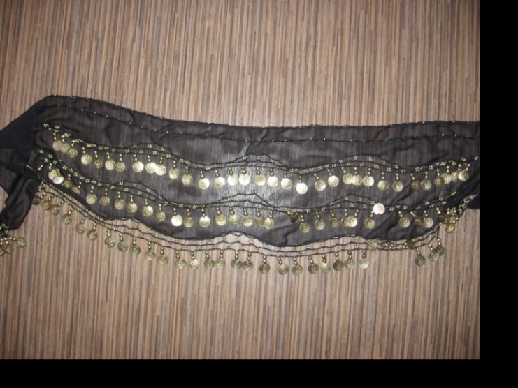 Prodám černý šátek se zlatými plíšky vhodný na břišní tance.