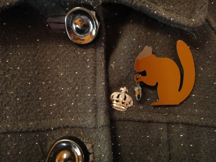 Barva černá se stříbrným prošíváním. S aplikací veverky.