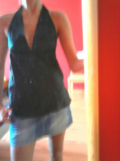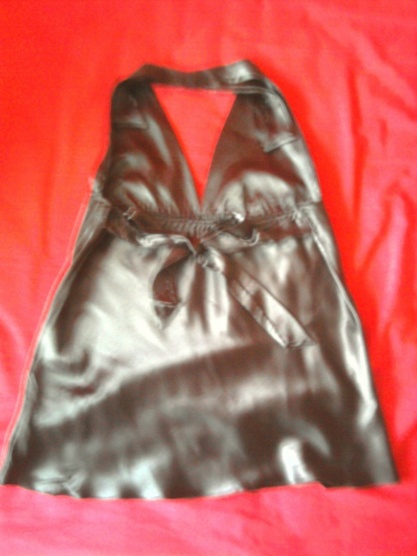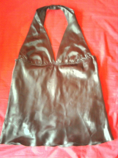 Černý saténový top se zavazováním za krk a vzadu, pod prsy je gumička a záda jsou holé..velikost univerzální, rozměry délka 37cm(měřeno pod prsy), šířka přes prsa 35cm..cena 100,-kč včetně poštovného