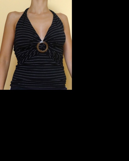 Prodám černý top s jemným světlým proužkem za krk, cena 150,- Kč vč. pošty, zn. Clockhouse, zakoupený v C&A.