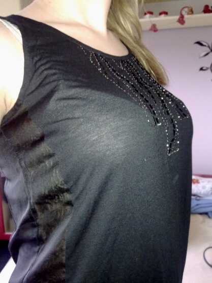 Nabízím černý top/tuniku/krátké minišaty velikosti menší M. Úplně nový, ještě s visačkou. Je z lehkého materiálu,na prsou našité korálky, po stranách průhlednější (ne tak moc jako na fotce, fotila jsem s bleskem), v úrovni boků ozdoba. Zezadu čistě hladké. PC 899, nabízím za 600 včetně pošty