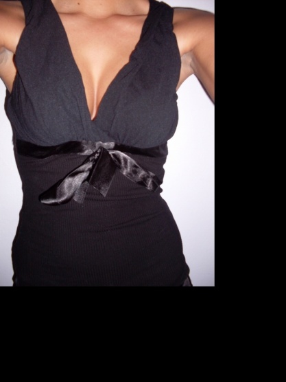 Pod prsy přišitá černá saténová mašle na zavázání.