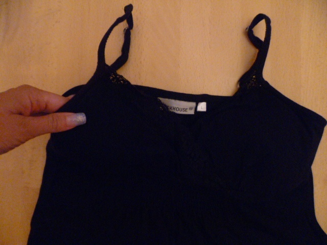 Prodám málo nošený velmi pohodlný bavlněný top na tenká ramínka, výstřih do V a kolem něj je krajka. Pod prsy nařasený. Já jej nosila na doma, hodí se jako košilka na spaní nebo i na ven jako top, je trošku delší. Prodám za 235 Kč včetně pošty. Pův. cena 399.
