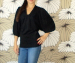 Netopýří rukávy stažené nad loktem, ale splývají níž.