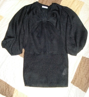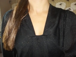 Atypický nabíraný top černé barvy se stříbrnými odlesky.