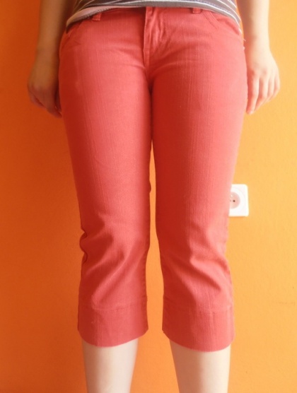 vklidu mají v pase 36 cm, nohavice jsou dlouhé 62 cm a široké 20 cm, na kalhoty se dá přidat pásek, kapsy má dvě vepředu(u jedné i minikapsa) a dvě vzadu