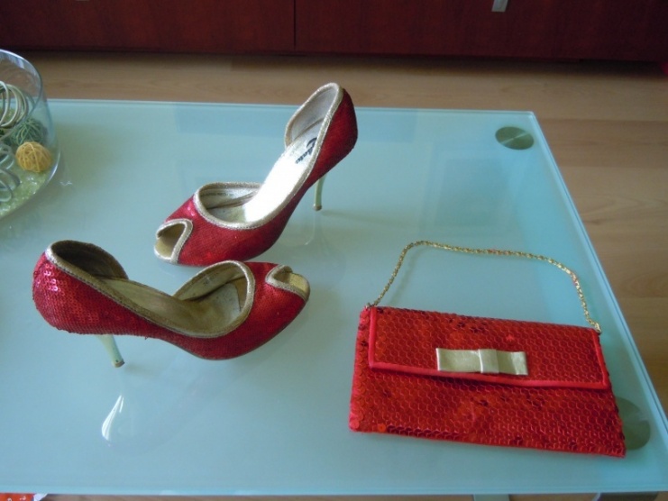 Prodám tyto střevíčky s kabelkou. Střevíčky velikost 37, stélka 23cm. V dobrém stavu, vzaté pouze na pár plesů, podrážka je černá, jelikož jsem si zbrousila podrážku proti klouzání a teď se na ní všechno lepí.