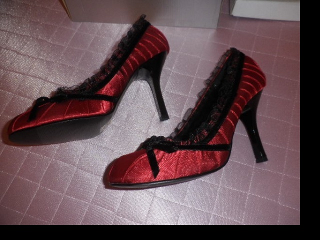 Krásné nové saténové lodičky s krajkou, objednané pro mě, ale bohužel mi jsou malé, tak posílám dále, vel. 38 ( na krabici uvedeno 8 a 1/2)