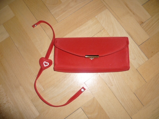 0Prodám červenou kabelku do společnosti. Ucho se dá odepnout. Na uchu je ozdoba ve tvaru srdíčka. Kabelka je jako nová. 200 Kč + poštovné.