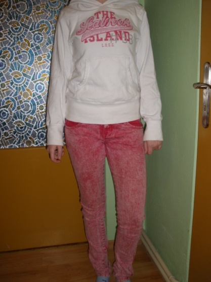 K tomu červené rifle Fishbone, velikosti 27, minimálně nošené( bez vad ). Dohromady to vypadá pěkně viz. foto.