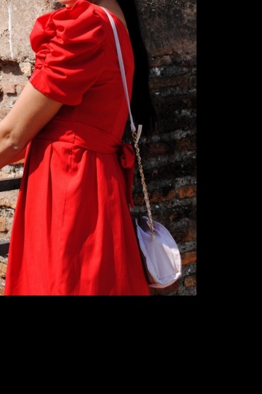 0Predám krásne šaty červenej sýtej farby s navrstvenými rukávmi. Nosené málo, ako nové, kúpené v Nemecku. Veľkosť M, 38, výstrih V, vzadu mašla na zaväzovanie.