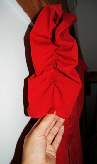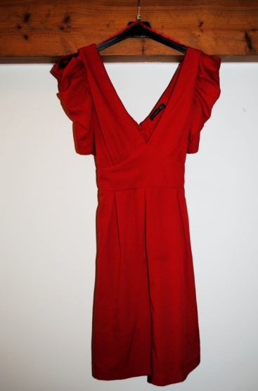 Predám krásne šaty červenej sýtej farby s navrstvenými rukávmi. Nosené málo, ako nové, kúpené v Nemecku. Veľkosť M, 38, výstrih V, vzadu mašla na zaväzovanie.