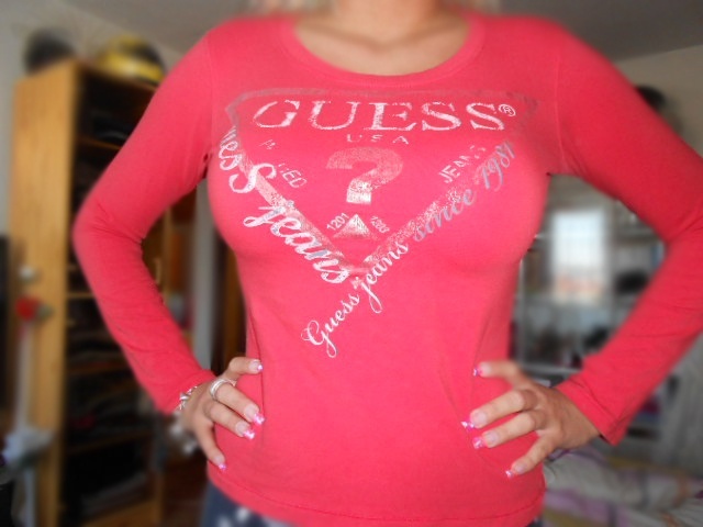 Nabízím pravé červené tričko značky Guess. Velikost S odpovídá.