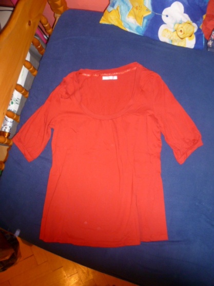Nabízím červené tričko s kulatým výstřihem. Cena 200 Kč + poštovné.